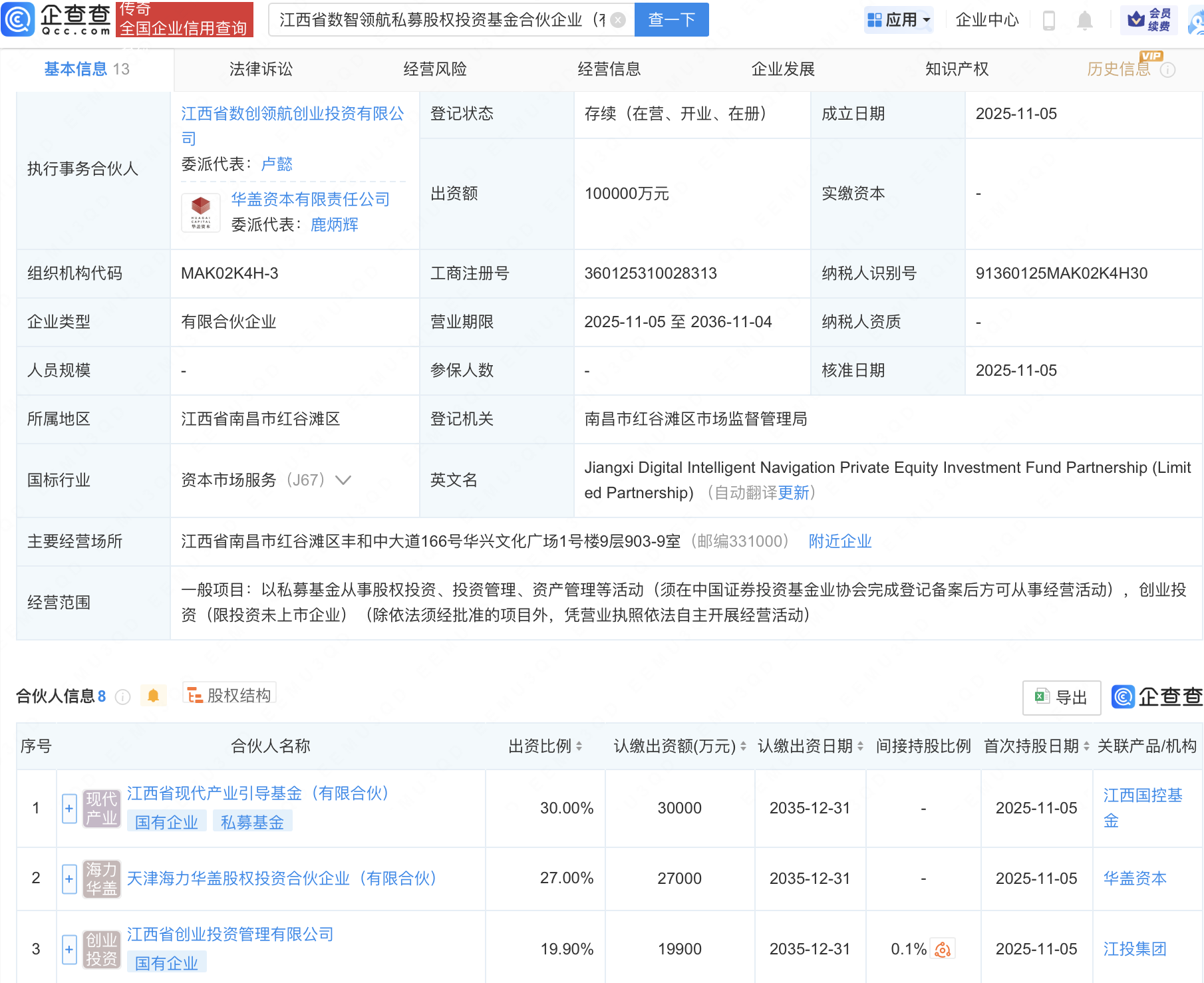 近日,江西省数智领航私募股权投资基金合伙企业(有限合伙)成立,出资额10亿元新宝配资,经营范围包含:以私募基金从事股权投资、投资管理、资产管理等活动。企查查股权穿透显示,该企业由江西省现代产业引导基金(有限合伙)等共同出资。